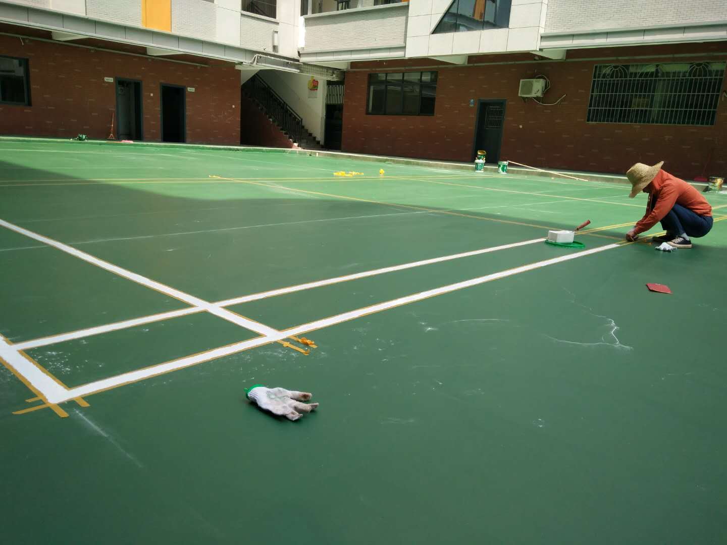 7)、按标准球场划线涂刷专业白线油底油一层,封闭面油一层;