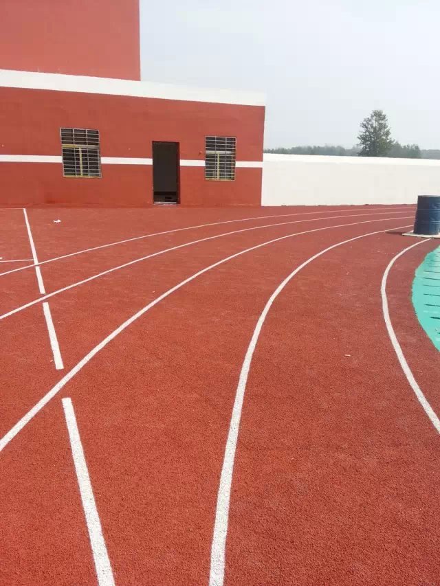 撒下3-5mmEPDM防滑颗粒,24小时后清扫掉未粘牢的EPDM颗粒,之后滚涂或喷涂一层跑道专用面漆。