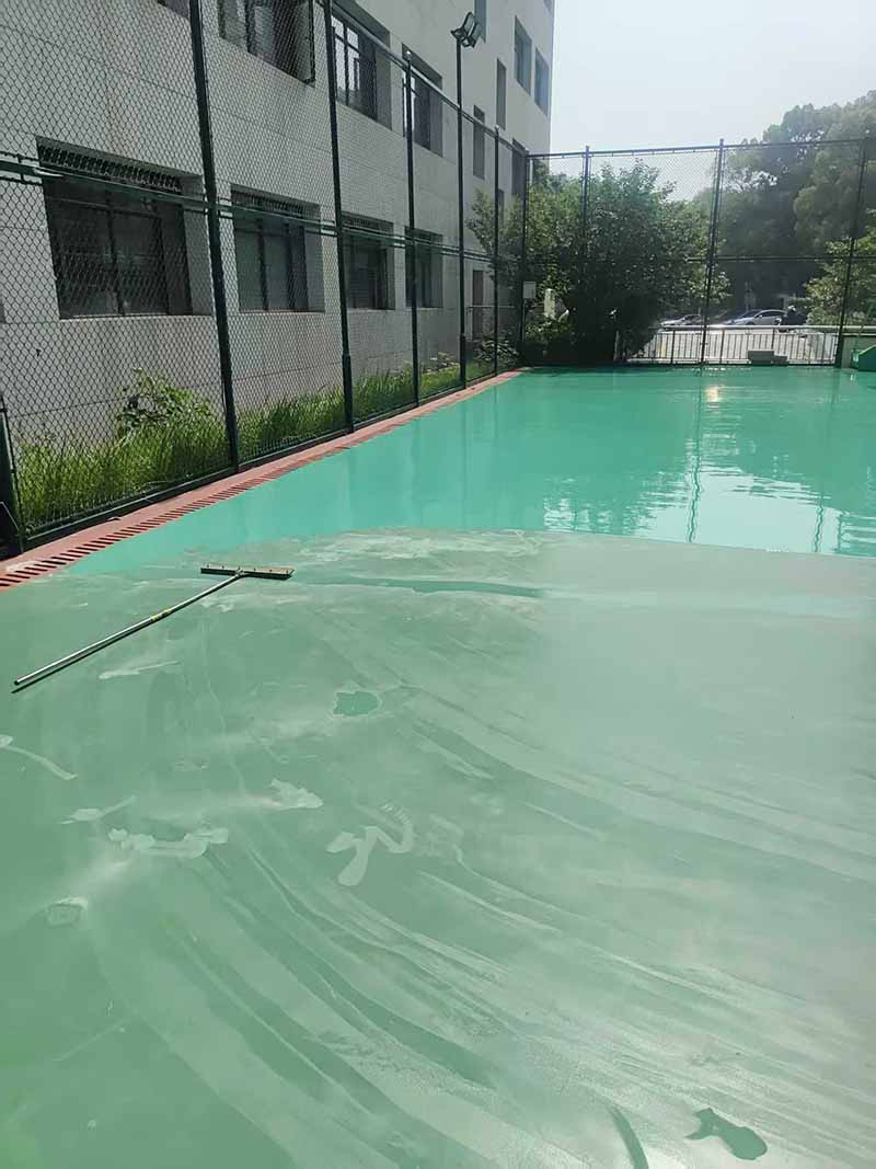 硅PU面漆和准备划线,硅PU篮球场施工完成