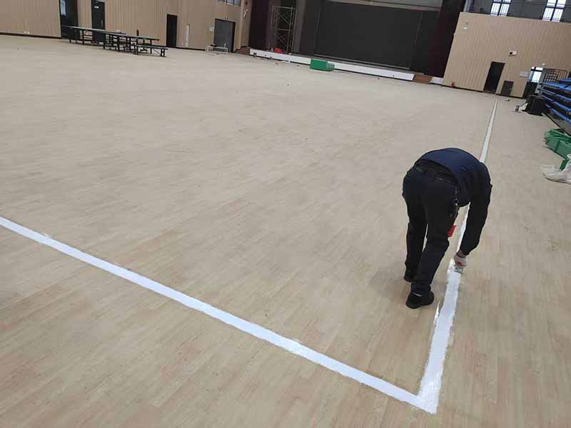 我们在木地板篮球场施工完后,划线一般采用专用丙烯酸划线漆划线。首先划线前需清理地面,确保无灰尘、油污等杂质。
