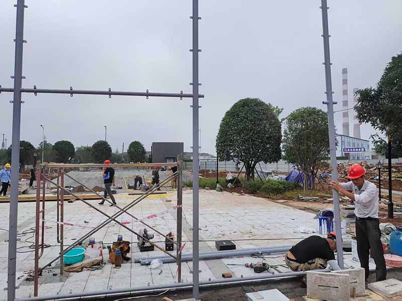 硅PU篮球场围网立柱和横栏施工