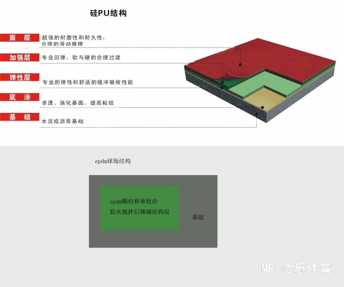 再次,看硅PU球场和epdm球场的结构图
