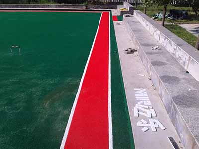 历时5天,经历了两场大雨,迈乐体育公司按照甲方要求严格施工,根据设计图纸和实际尺寸圆满完成人造草坪门球场铺装工程。