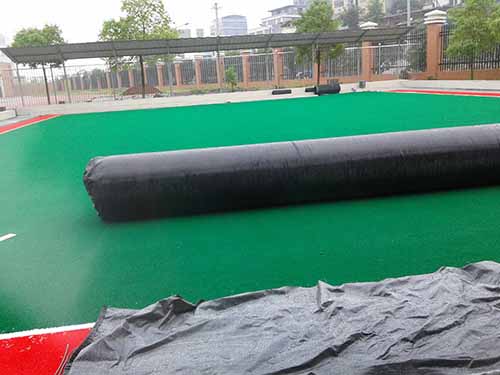 人造草坪门球场施工——粘贴撞墙草