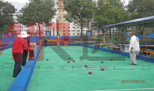 选择适当空间,如4米*15米或3米*12米,即可进行滚球运动。休闲滚球场选择平整的碎石地、红土地或短草地等。
