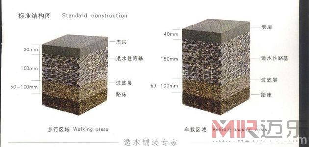 4.因透水混凝土其孔隙率大,水份散失快,当天气温高于35℃时,施工时间应宜避开中午,适合在早晚进行施工。