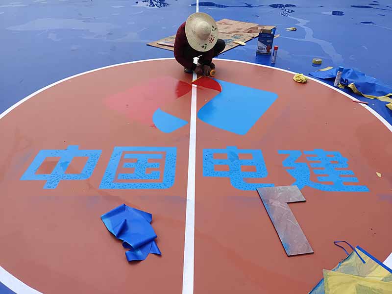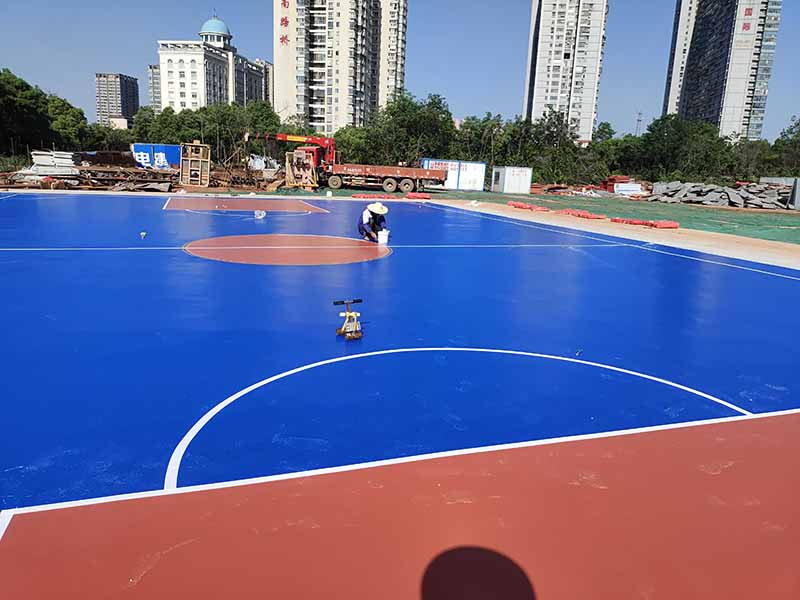 湖南长沙水电八局地铁七号线项目部硅PU篮球场施工