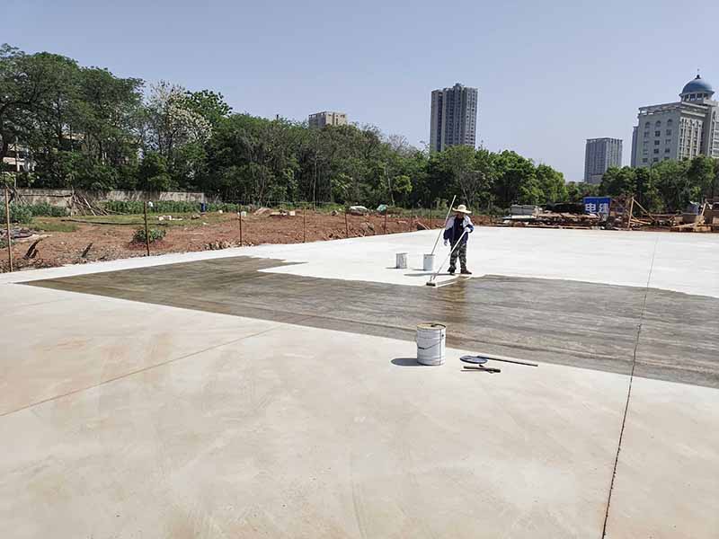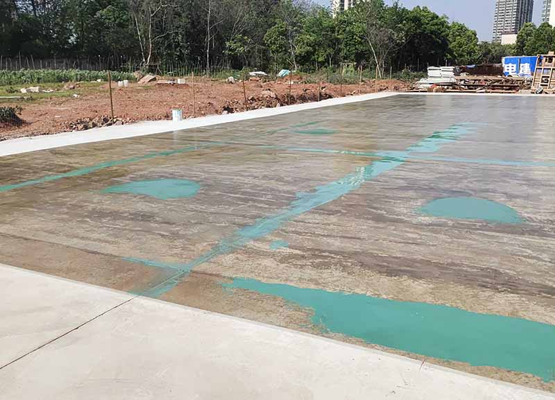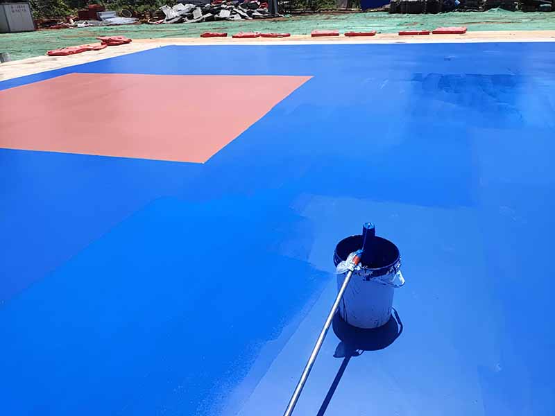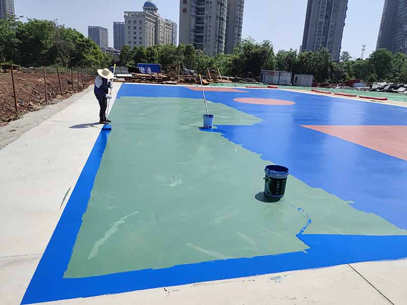 2、清扫基础,滚涂硅PU球场水泥封闭底涂。填补收缩缝和修补积水。