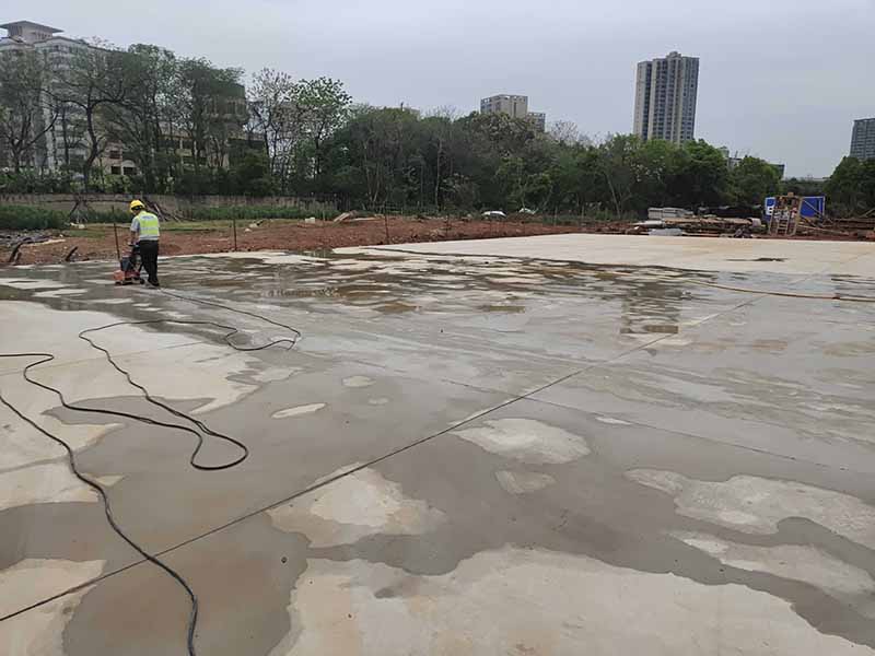 1、打磨球场水泥基础:因为基础表面黄泥巴多,新基础进行全场打磨。清洗了3遍。