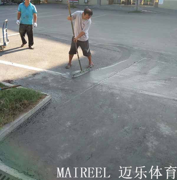 2018年6月28日开始进场施工,长沙迈乐体育设施有限公司承建长沙县某社区居委会硅PU篮球场施工。该篮球场为沥青基础,沥青基础已经