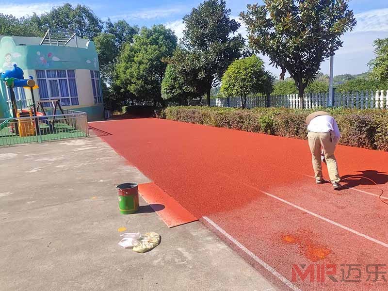 跑道喷面胶和喷面epdm颗粒搅拌均匀。喷涂需要注意匀称,不漏喷,盖底,不显黑。