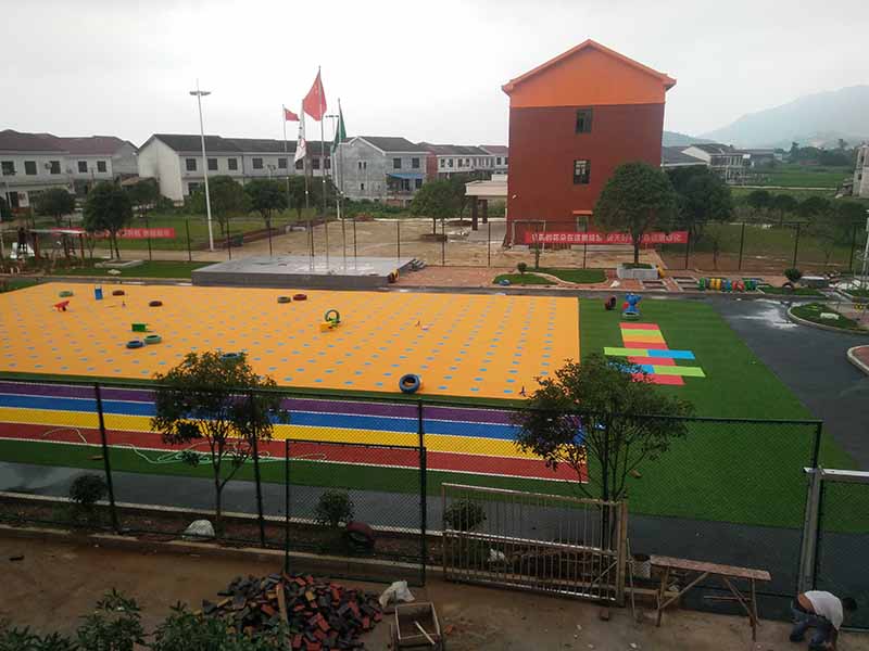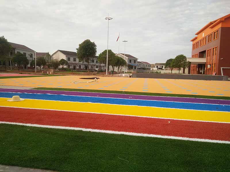 湖南株洲醴陵市贝思特幼儿园人造草坪彩虹塑胶跑道、epdm环道,悬浮拼装球场施工