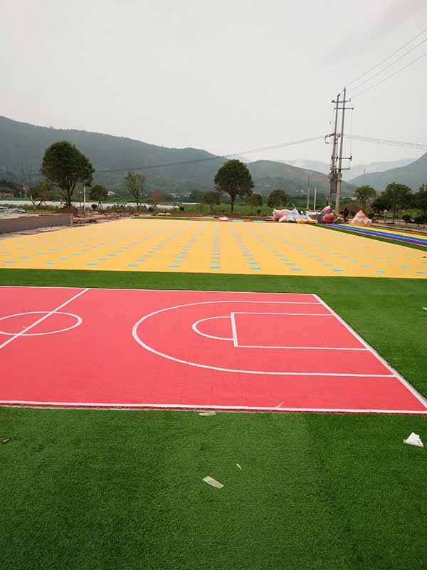 塑胶施工内容:人造草坪彩虹塑胶跑道、epdm环道,悬浮拼装球场、室内PVC地板施工