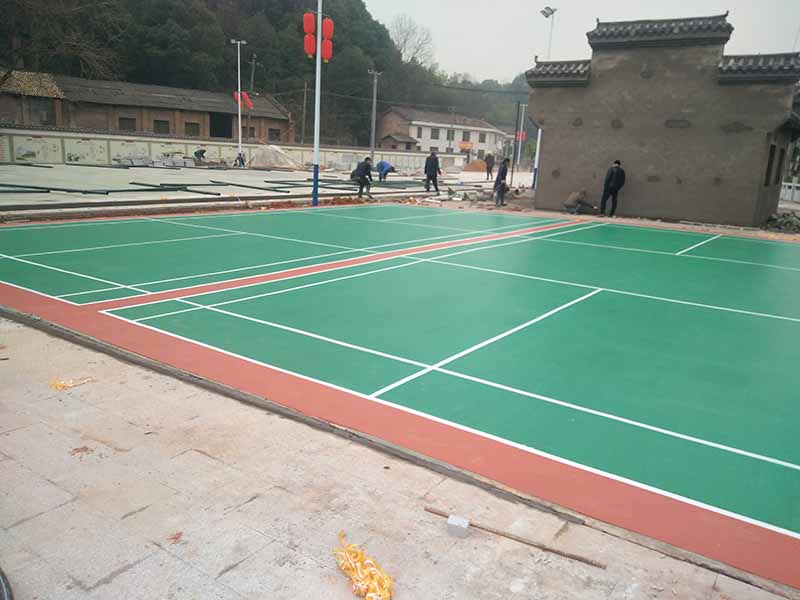 醴陵市马脑村活动广场硅PU篮球场、羽毛球场施工