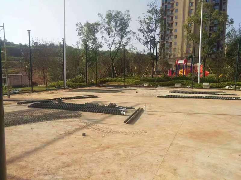 丙烯酸篮球场围网施工地点:长沙碧桂园南城首府山坡上