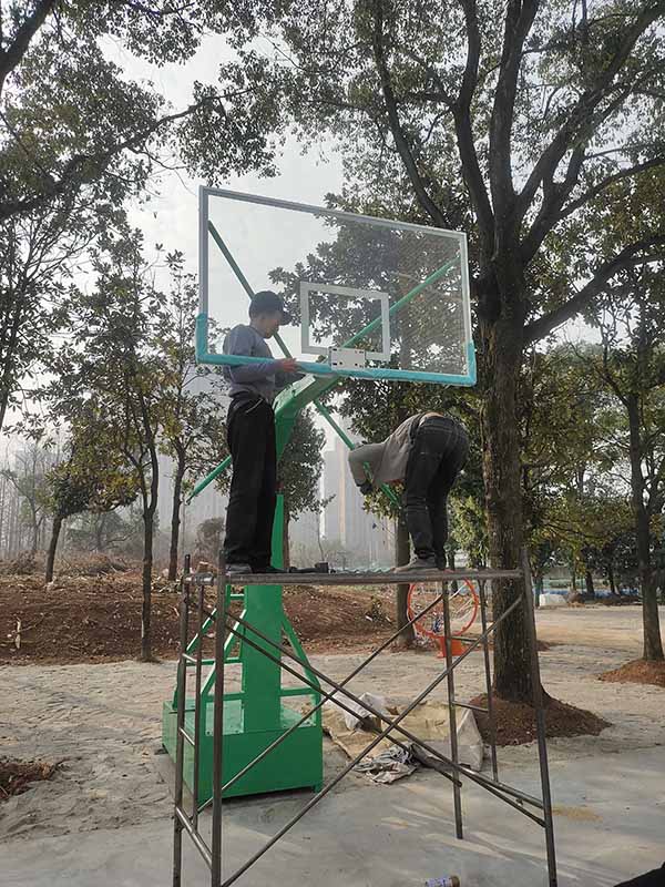 篮球架安装施工地点:湖南农业装备研究所内