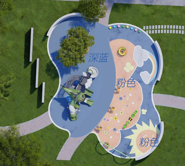 EPDM塑胶场地施工内容:13mm白颗粒打底,面层彩色epdm颗粒。