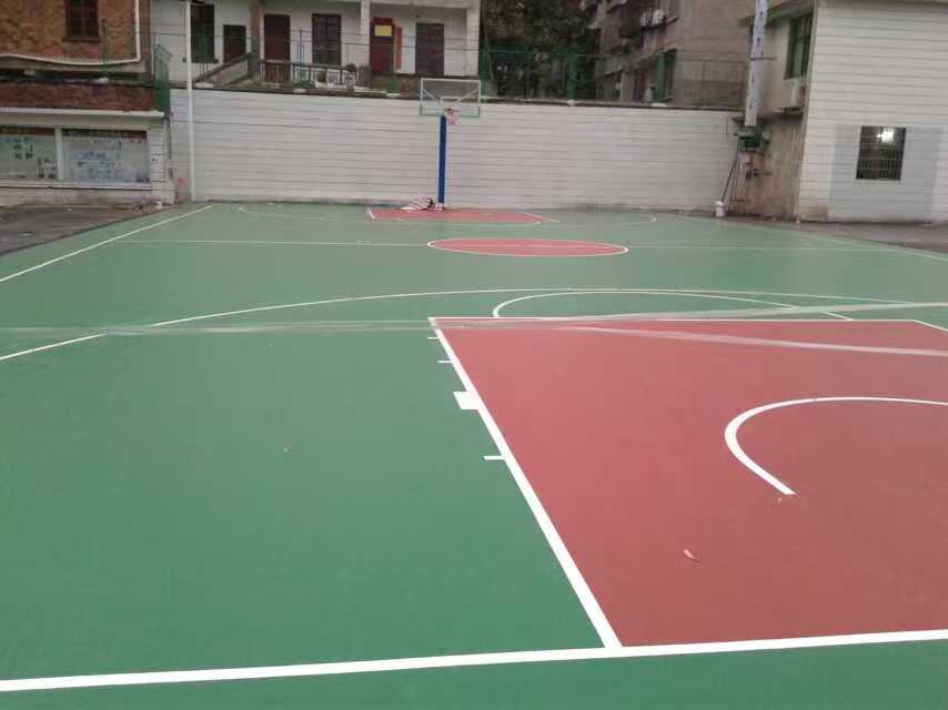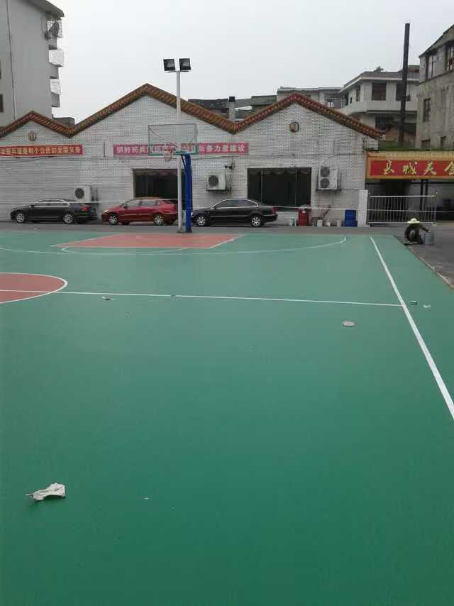 湖南邵阳市新宁县武装部硅PU篮球场施工及羽毛球场划线施工