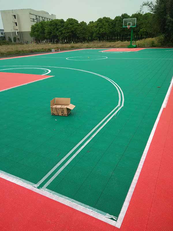 悬浮拼装运动地板篮球场划线施工图片: