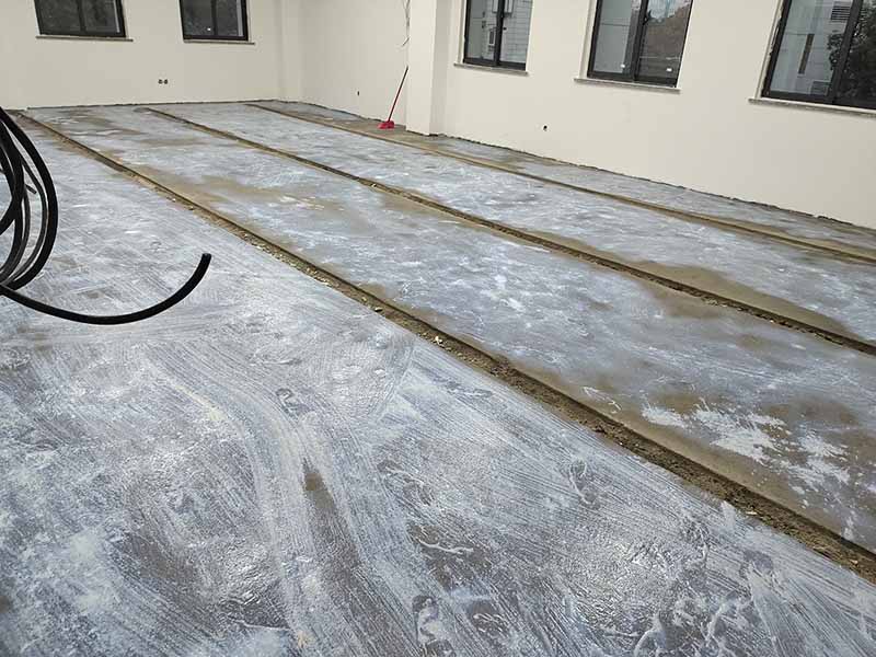 该基础严重起砂,没有养护到位,经过4次固化处理,逐渐达到施工要求。