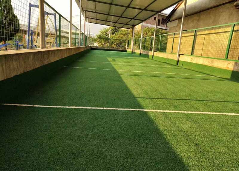 6、填充优质石英砂:保护草丝,增加场地的弹性,使运动更完美;