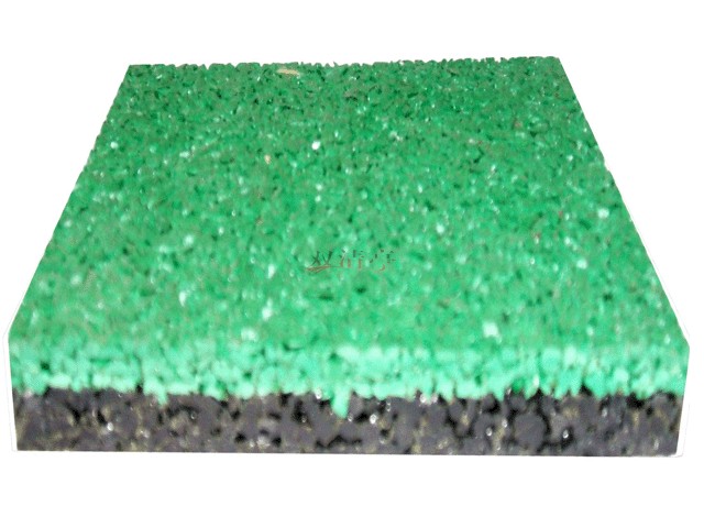 底层为黑色橡胶轮胎颗粒或者白色EPDM橡胶颗粒根据设计厚度要求为5mm或者8mm厚度(具体厚度根据设计可以调整),