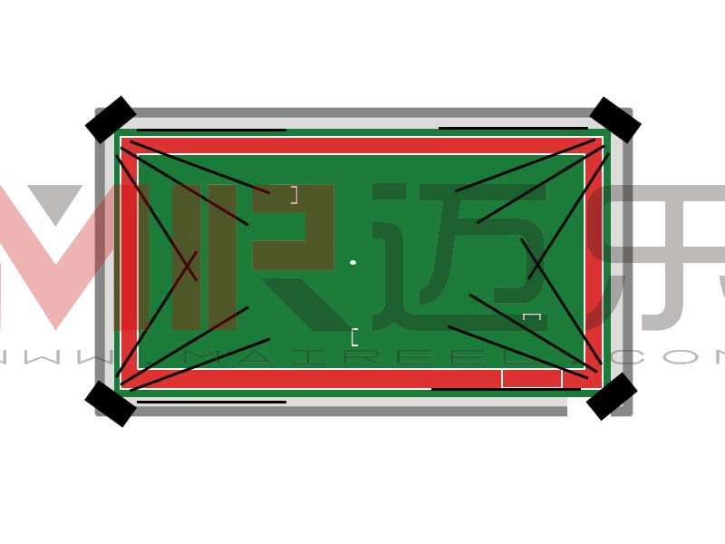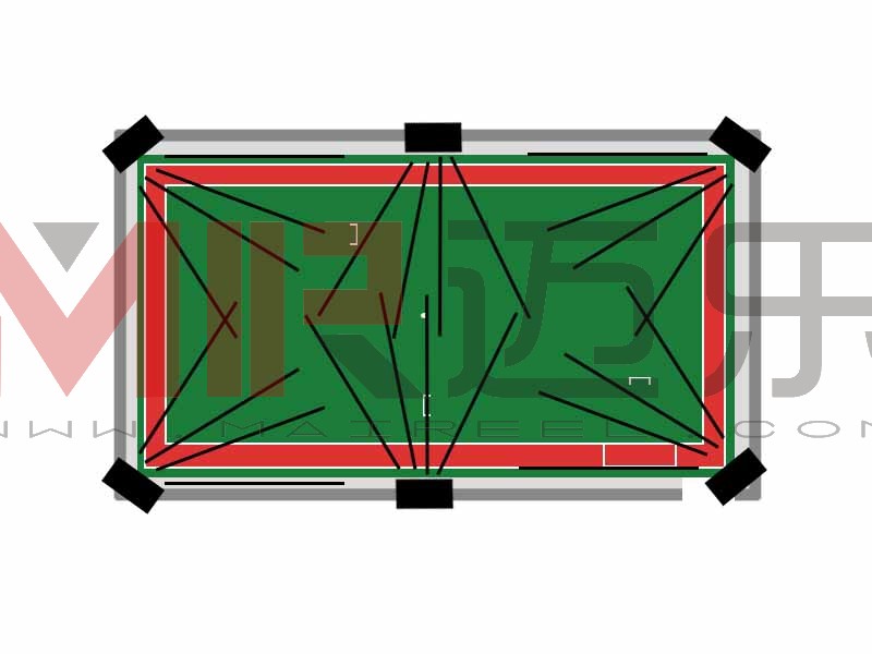 该方案在四角四灯基础上,增加了中间对向两个灯,弥补了四角四灯中场照明的欠缺。灯具选择与四角四灯一样,可以选择不同功率的灯。