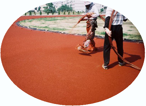 水,待跑道弹性层固化后,进行塑胶跑道喷面。