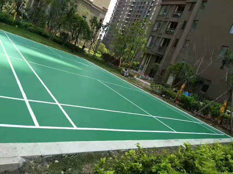 按专用砂比例充分混合搅拌均匀硅PU球场材料,铺设于加强面上,一般铺设两道或三道;也可做成光滑面。